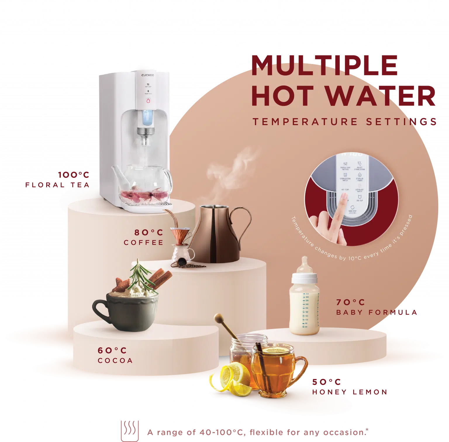 Small body, massive power. CUCKOO TITAN gives you instant 100°C hot water, purified with advanced filtration — all in a compact, minimalist design.
